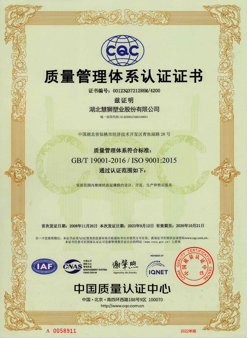 慧獅湖北慧獅塑業(yè)股份有限公司是一家專(zhuān)業(yè)從事研發(fā)、生產(chǎn)、銷(xiāo)售高性能聚烯烴流延薄膜的高新技術(shù)企業(yè)。
